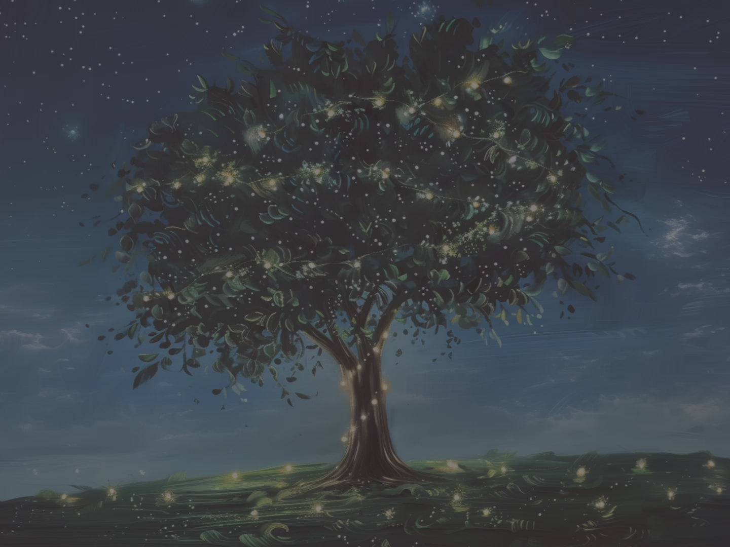 Halten Sie Ihre Gedanken in diesem Hardcover-Notizbuch mit Glühwürmchenbaum-Motiv fest. Ein leuchtender Baum, erstrahlt im Schein schwebender Glühwürmchen unter einem tiefblauen, sternenklaren Nachthimmel, schafft eine ruhige, magische Atmosphäre, in der sanftes Licht durch üppiges Laub fällt und zarte Funken über den Boden schweben.
