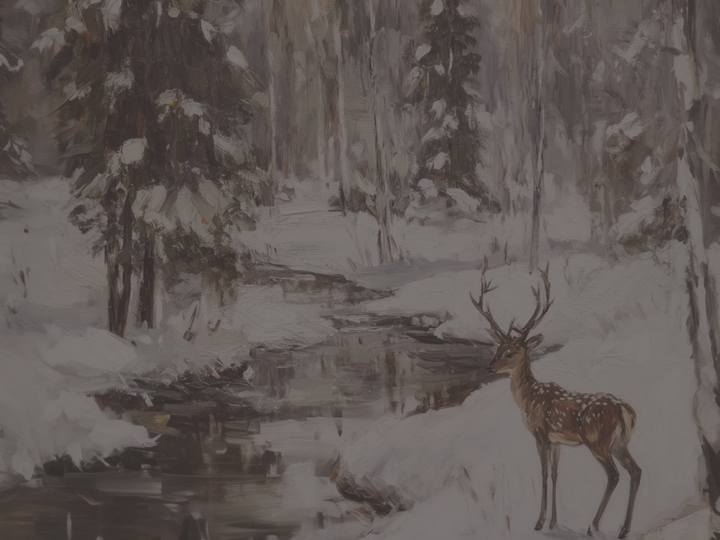 Verleihen Sie Ihrem Zuhause mit diesem Dekokissen mit winterlichem Hirschmotiv im verschneiten Wald einen Hauch von Winterzauber. Das hochwertige Kissen zeigt eine wunderschöne Waldszene mit einem einsamen Hirsch an einem stillen, schneebedeckten Bach und verwandelt jeden Raum in eine friedliche Oase.