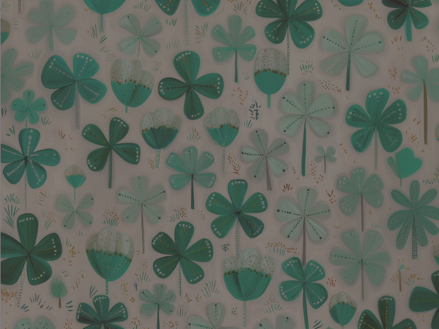 Scattered botanical clover elements set against a soft neutral background create a refined holiday look that's cheerful yet sophisticated. The layered shamrock pattern brings depth and visual interest to any space.